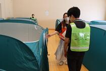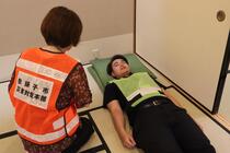 「避難所開設・運営マニュアル(風水害編)」に基づき、風水害時に特化した避難所の開設から受付、運営について、職員を中心として実践的かつ効果的な訓練を実施しています。