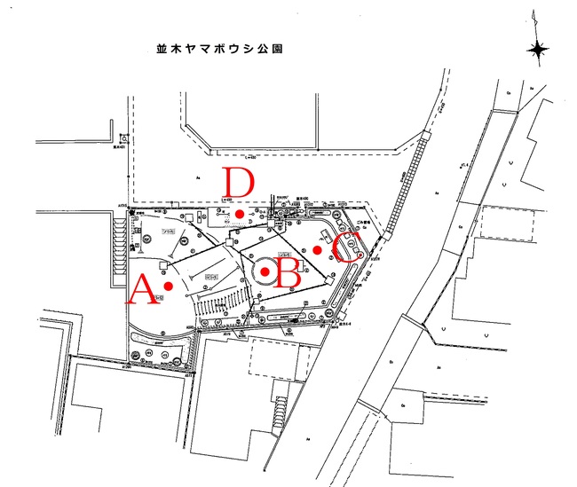 | 測定日 | 天気 | A:公園中央(芝) | B:砂場 | C | D |