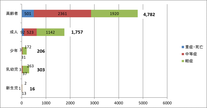 入院の必要がない「軽症」の割合が、全体の約5割となっています。