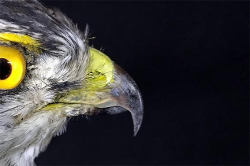 先が鋭くかぎ状に曲がったくちばし