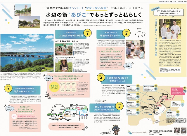 実際に東京から我孫子に住み替えた、小林さん一家のコメントも掲載。「子連れに優しく、ママを楽しめる街」として我孫子に大満足の様子がうかがえます。