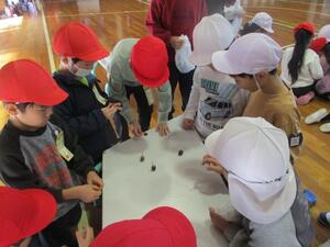 どんぐりごま対決!誰がいちばん長く回せるかな