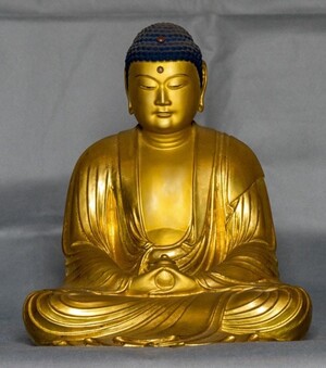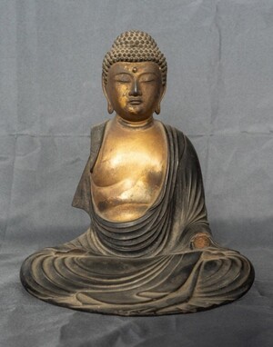 像高17.4センチメートル。左手を左腿上に置き、右足を上にして結跏趺坐する如来形の坐像。右肩から先と左手首先を欠失しているため尊格不明。全体的に端正に整えられ、眼の見開きが浅い穏やかな表情や流麗な衣文は平安時代後期に広く普及した定朝様を継承しているが、衣文の彫りには硬さもみられる。また地髪部前面が低く髪際が額中央部でわずかに下がる点、面部の輪郭、膝前の奥行きを大きくとる点などから、江戸時代前期の復古作とみられる。構造は頭体幹部を一材から彫出する一木割矧造で、三道下で差首。玉眼を嵌入する。左右腰部、膝前、裾先にそれぞれ別材を寄せる。像底は布張のうえに漆塗。像底の体部背面側中央にほぞ穴があり、台座と固定するとみられる。後補の水晶製白毫嵌入。肉髻珠欠失。現状の像表面は肉身部を漆箔、衣部は黒漆塗とするが、衣部には漆の下に彩色や金泥による唐草等の文様の痕跡がみられる。