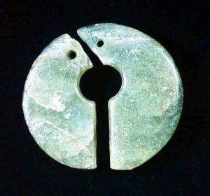 中国の「けつ」と呼ばれる玉器に形が似ていることから、「けつ状耳飾」と呼ばれます。