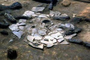 住居の炉跡の上に正立してつぶれた状態で出土しました。
