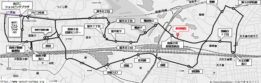 詳しいルートを確認したい場合は、我孫子市公開型GIS「あびまっぷ」内の「バス停留所」からご確認ください。