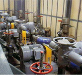 配水池に貯えられた水を利用者の皆さんに送り出す配水ポンプが設置してあります。配水ポンプは、時間や季節の変動に適用した運転が出来るようになっています。