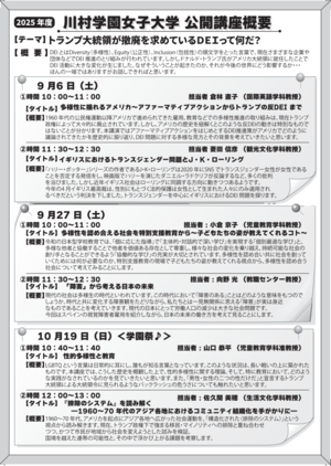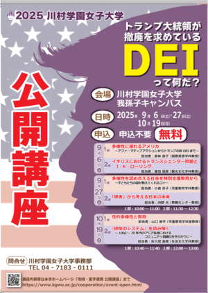 川村学園女子大学公開トランプ大統領が撤廃を求めているDEIって何だ?」9月6日(土曜)、27日(土曜)、10月19日(日曜)(外部サイト)