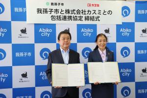 令和3年6月29日、我孫子市役所市長応接室において、我孫子市星野市長と株式会社カスミビジネス変革本部SDGs推進マネジャーの伊神執行役員が出席し、我孫子市と株式会社カスミとの包括連携協定締結式を行いました。