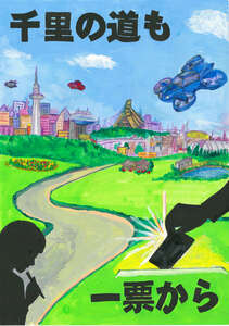 | 会長賞 新木小学校 佐藤 飛呂さん | 「一票で 明るい未来へ キックオフ」 |