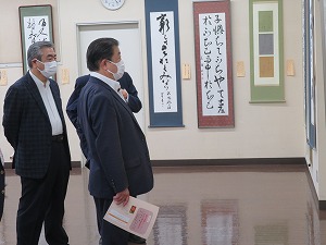 書道作品を鑑賞する星野市長