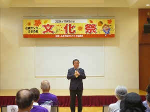 星野市長は、文化祭の開催にご尽力いただいた関係者の皆様に感謝するとともに、今回の文化祭のような地域の行事を通して、地域のコミュニティ活動が活発となり、地域福祉が発展していくことを願っていますと挨拶しました。