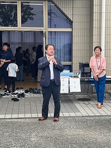 星野市長は、「これまで練習してきた成果を精一杯発揮し、思い出に残る楽しい一日にしてください」と児童の皆さんに激励の言葉を送りました。