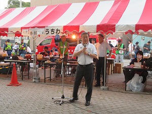 手賀沼花火大会で歓迎の挨拶をする星野市長