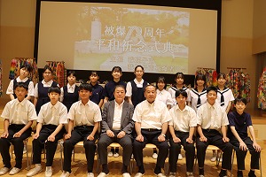 被爆79周年我孫子市記念平和祈念式典をアビスタで開催しました。式典では星野市長が式辞を述べ、戦没者並びに原爆犠牲者に哀悼の意を捧げ、併せて核兵器の廃絶と恒久平和を祈念しました。式典後、手賀沼公園の平和の記念碑にて献花をしました。