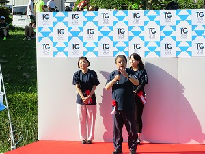 星野市長は、手賀沼トライアスロン大会の開会式に出席し、選手の皆さんを激励しました。