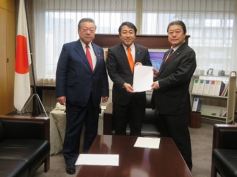 復興庁では、櫻田義孝衆議院議員、前の復興大臣である渡辺博道衆議院議員とともに、田中和徳復興大臣に要望書を提出しました。